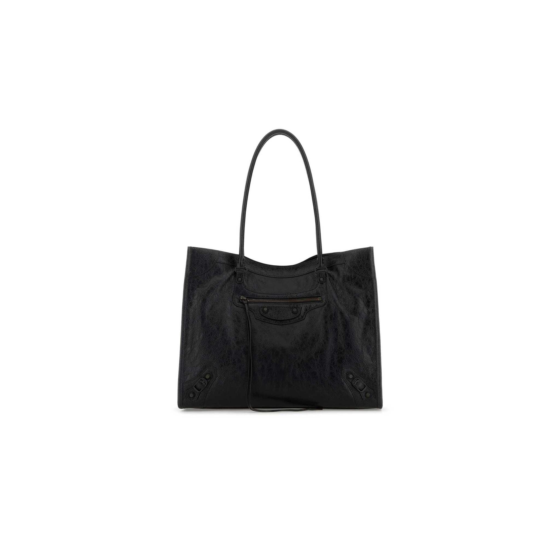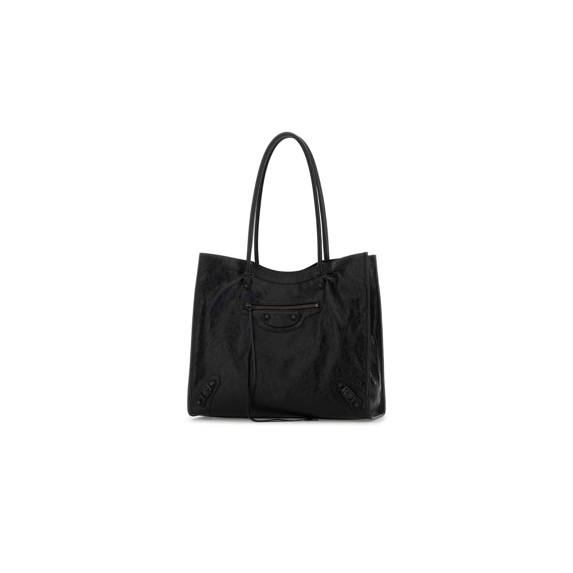 The Le City Tote Bag, in lambskin, is a statement of urban attitude with its deconstructed silhouette and metallic details that challenge convention. The soft, supple leather offers a distinct touch, while its lines express Balenciaga's deliberate irreverence.
