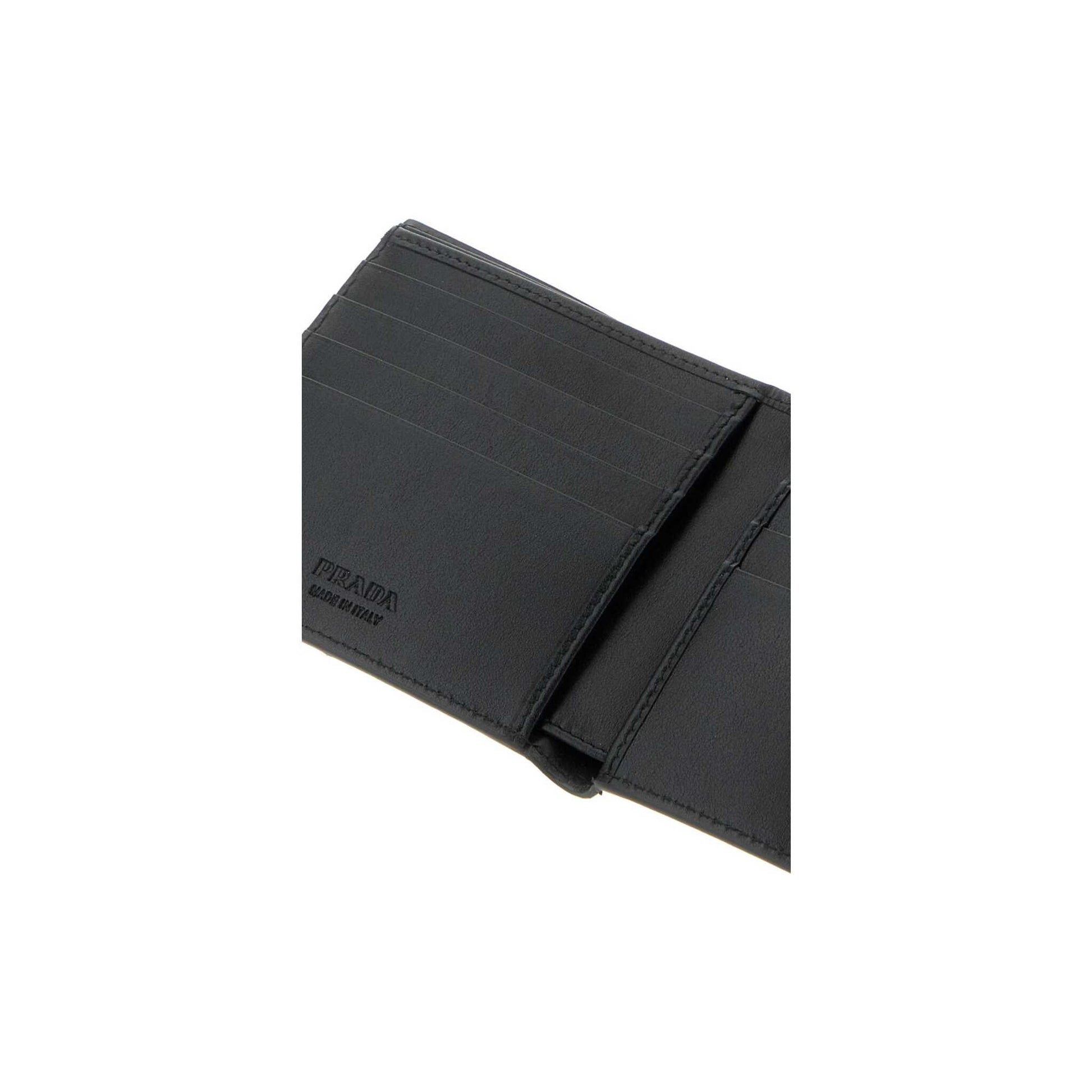 A carteira Prada em Pele Martelada traduz a lógica minimalista da maison: nada que sobre, nada que falte. A textura do Pele Martelada firma-se entre os dedos com a densidade certa, e a organização interior distribui cartões, notas e pequenas moedas sem sobreposições — tudo no sítio certo.